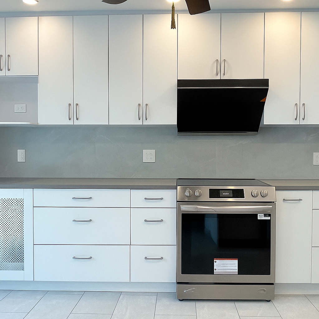 Matte White Modern Cabinet with Gray Quartz Coutnertop